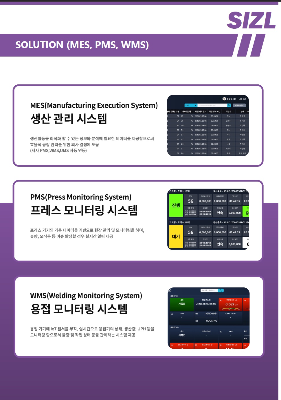 시즐은 제조공정 전반에 토탈 서비스를 제공하는 스마트팩토리 기업입니다.