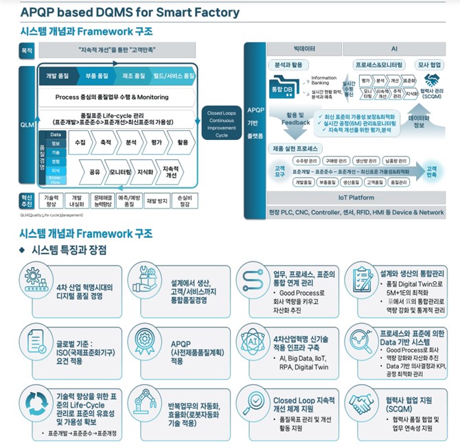 저희가 이렇게 200여개의 업체와 함께할 수 있는 이유가 뭘까요? 그건 바로 제조업체의 특별한 어려움을 주목하였기 때문입니다. 제조 기업의 현장 공정을 그대로 반영하여 커스터마이징 MES .QMS 구축부터 자동화 공정, SPC 연계까지 통합 연계 Framework를 구축하여 서비스하여 현장의 공정의 어려움을 해결해드리고 있습니다. 품질. 이제는 높이는 것이 문제가 아니라 지속적으로 꾸준하게 관리를 해야 합니다. 그래서 저희는 품질시스템 요구사항을 지속적으로 반영하고 개선해 같이 성장해왔고 완성도 높은 서비스를 제공하고 있습니다. 시작은 품질이지만 이기술로 뻗어나갈 무궁무진한 서비스들을 제조기업의 든든한 비지니스 파트너로서 글로벌 품질경영 실현을 부가가치 창출의 도움을 드리고 있습니다.