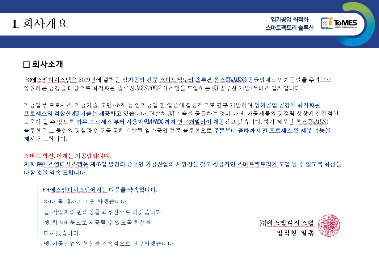 (주)에스엠디시스템은 임가공업에 최적화된 MES/POP 솔루션, 톰스(ToMES)를 서비스하는 기업입니다.