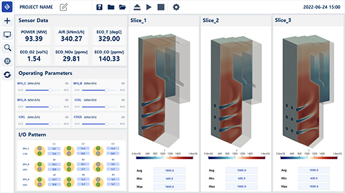 : PACE on Cloud에서 제작된 차수 감축 모델(ROM)을 기반으로, 통합 네트워크 시스템 ROM과 주요 요소 설비에 대한 3차원 ROM을 현장 데이터와 결합함으로써 실시간 모니터링, 가상 운전 예측 및 최적화 운전을 구현할 수 있는 현장 앱 제4차 산업혁명 시대의 제조업은 소프트웨어 중심으로 변화하고 있으나 국내 산업 현장의 CAE 소프트웨어는 대부분 외국산이 차지하고 있습니다. ㈜페이스는 사용자의 직관과 경험에 의존한 판단에 의해진행되는 기존 설비 운전의 한계를 극복하고 다양한 산업에서 디지털화를 통한 효율성 및 생산성 개선을 실현하기 위해 전산 해석 소프트웨어와 현장 데이터와 CAE 시뮬레이션을 융합하는 ROM 기술을 바탕으로 디지털트윈이 갖추어야 할 실시간 데이터 연계, 모니터링, 가상 운전 예측 및 최적 운전 조건 추천 기능 등을 구현할 수 있습니다.