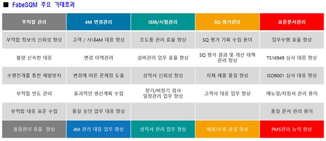 FabeSQM(공급자 품질관리 솔루션) : 4M관리 및 8D프로세스를 적용한 부적합 관리에 대한 품질관리 표준기능 제공