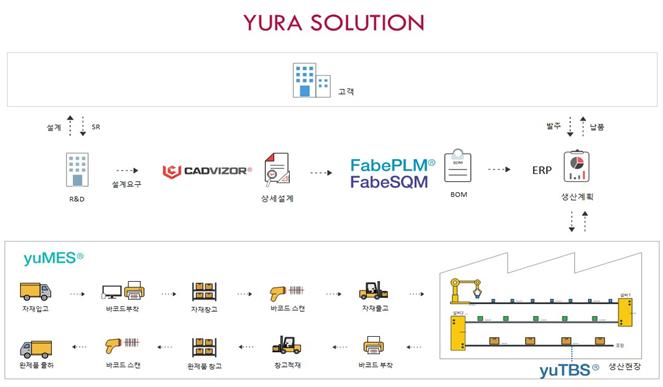 다년간 제조업을 지원해온 유라 IT사업본부에서는 1. 20년 이상 현장 스마트공장 솔루션 PLM,QMS,MES 및 제조빅데이터(yuTBS, Clarity)등 다양한 제조 현장에 생산성과 품질 개선을 통해 원가 절감을 지원하는 솔루션을 공급하고 있습니다. 2. 국내는 물론 해외 10여 개국의 제조 현장에 구축 및 운영 노하우를 제공해 드립니다. 3. 외산 솔루션에서 제공하지 못하는 주요 프로세스 구현 및 업무에 맞는 기능 제공을 통해 유라 솔루션의 우수한 스마트 공장 솔루션을 제공해 드립니다.