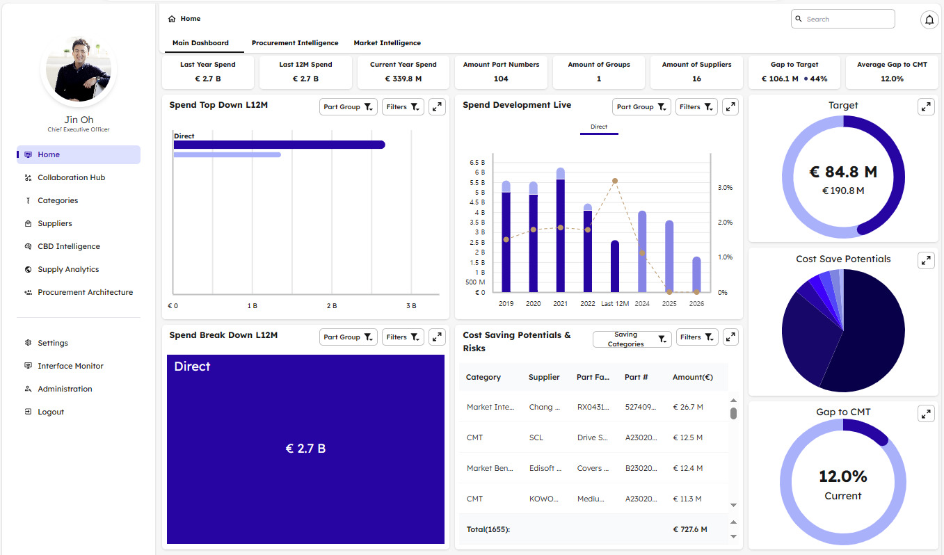 IVOFLOW는 제조 기업들의 조달 성과를 효과적으로 관리할 수 있는 최적의 솔루션을 지원하고 있습니다. 광범위한 글로벌 자동차 조달 경험을 바탕으로 구조화되지 않고 혼란스러운 데이터 세트의 구조화와 복잡한 글로벌 시장에서의 비용절감 목표 달성을 돕기위해 아래와 같은 다양한 기회를 제공하고 있습니다. 환율정보 관리, 제품 가격추이 분석, 현지화 전략, 원자재 정보 관리, 원가분석 데이터, 벤치마킹 등의 기회를 하나의 솔루션을 통해 제공하여 전략적 지출 관리를 통한 구매의 투명성 확보와 끊임없이 변화하는 시장에서 경쟁력을 유지할 수 있도록 도와줍니다.